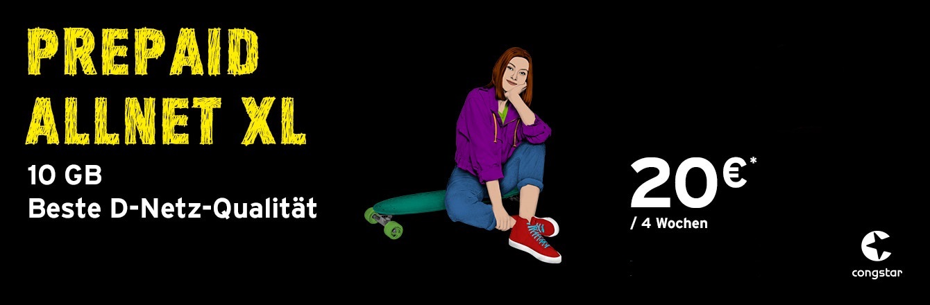 Der Prepaid Allnet XL Tarif bietet dauerhaft 10 GB und das für nur 20 €/ 4 WochenT-1117_1.