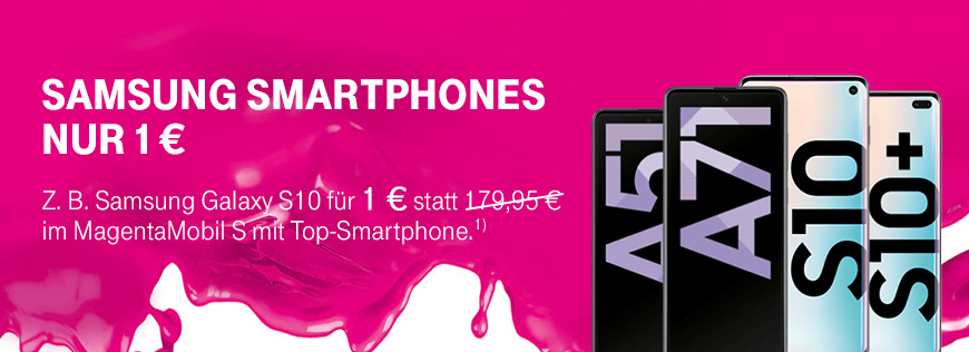 Jetzt Samsung Samrtphones zum super Preis vermitteln. Mit dem aktuellen Smartphone Angebot erhalten Neu- und Bestandskunden bei Abschluss von ausgewählten MagentaMobil, MagentaMobil Young oder FamilyCard Vertrags im Aktionszeitraum vom 27.02. bis zum 08.03.2020 Smartphones zum unschlagbaren Aktionspreis R-200306.