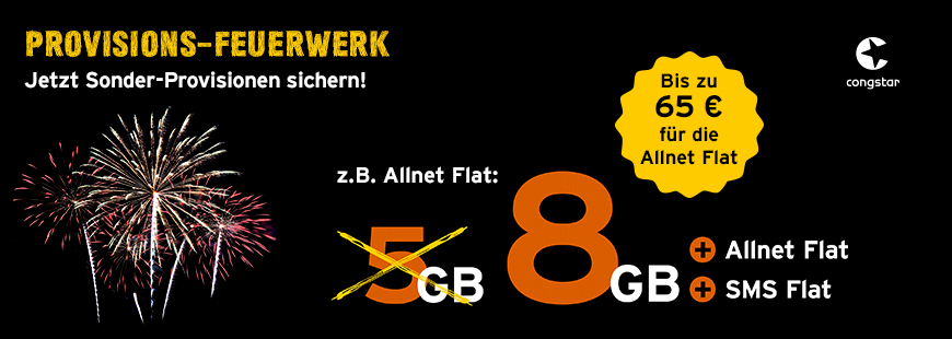 Schon angemeldet zum Provisionsfeuerwerk? Dann gleich hier im aktuellen congstar Angebot stöbern.